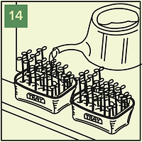 Fill the trays with about 1¼ cup (296 ml) 7 moistened soil mix.