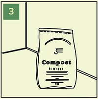 In the bottom of each tray mix ½ teaspoon (2.5 ml) of kelp and 1 tablespoon (14.8 ml) of compost.