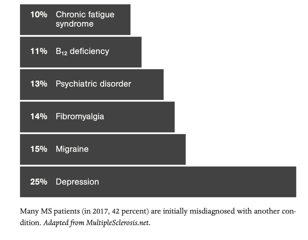 According to the MS neurologist (a neurologist who specializes in MS), the MRI showed multiple lesions in my brain and upper cervical spine and reflected years, or even decades, of attacks. Suddenly all of the odd, unexplained, and seemingly discrete episodes I had experienced—the profound fatigue, the shooting pains in my neck, the urinary issues, the mental confusion —made sense.