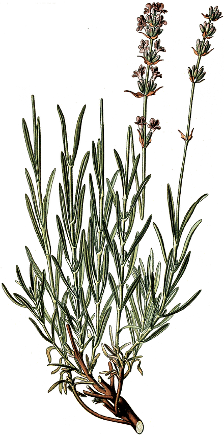 Native to the Mediterranean, lavender is a woody perennial that likes warm and well-drained sandy, chalky soils. Plants should be mulched well with straw or leaves for the winter in areas with harsh cold. Species used include Lavandula angustifolia and L. stoechas.