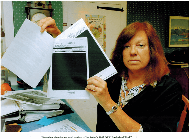 Over four decades I scoured the declassified records of the OSS (Office of Strategic Services, forerunner of the CIA) at the National Archives and British archives, suing the CIA under the Freedom of Information Act, and interviewing friends, colleagues, and relatives of my father, America’s only master spy in the Middle East at the time of his death. Below is a photo of me showing a heavily redacted 1943 “Analysis of Work” written by my father about his anticipated objectives before heading to Beirut, Lebanon for the OSS. The CIA recently removed all redactions from the document at my request.