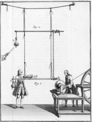 Abbé Jean Antoine Nollet, a theologian turned physicist, introduced the magic of the Leyden jar into France. He tried to satisfy the insatiable demands of the public by electrifying tens, hundreds of people at once, having them take each other by the hand so as to form a human chain, arranged in a large circle with the two ends close together.