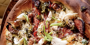 Milkweed Bud Pizza with Bacon and Pickled Turnips