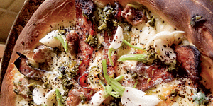 Milkweed Bud Pizza with Bacon and Pickled Turnips